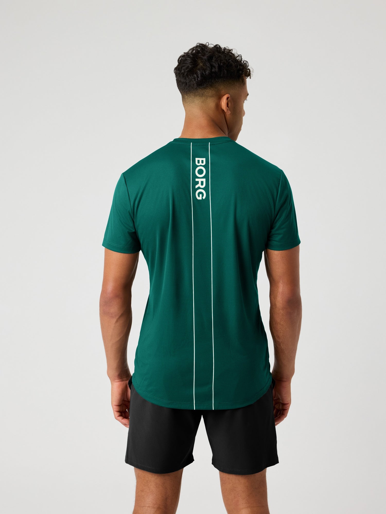 A lightweight, breathable men's sports T-shirt in recycled polyester for tennis and padel, with quick-dry comfort, a longer cut for overhead swings, and tennis ball chest print plus Borg logo stripe at back.Soft recycled polyester in a light, breathable performance fabric
